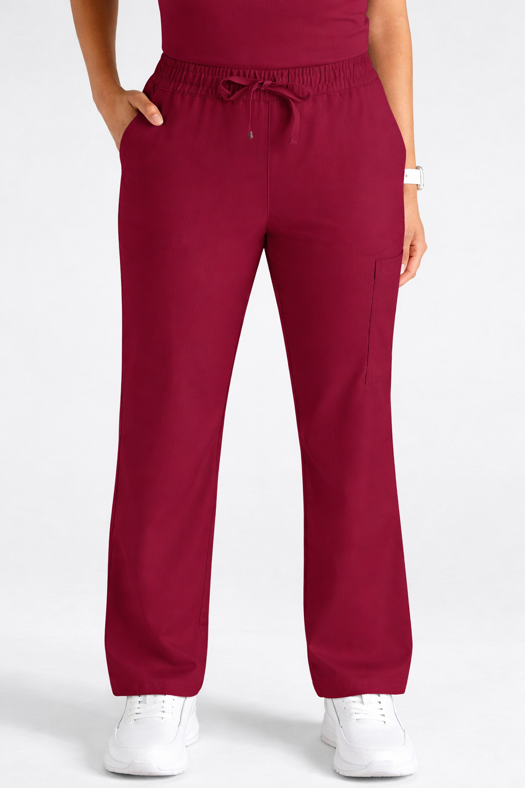 El color burdeo es altamente valorado en el entorno clínico por su apariencia profesional y facilidad de mantenimiento, ya que ayuda a disimular manchas y mantiene una imagen ordenada. Además, este pantalón clínico incorpora bolsillos funcionales, perfectos para transportar instrumentos, accesorios o elementos esenciales del trabajo diario.